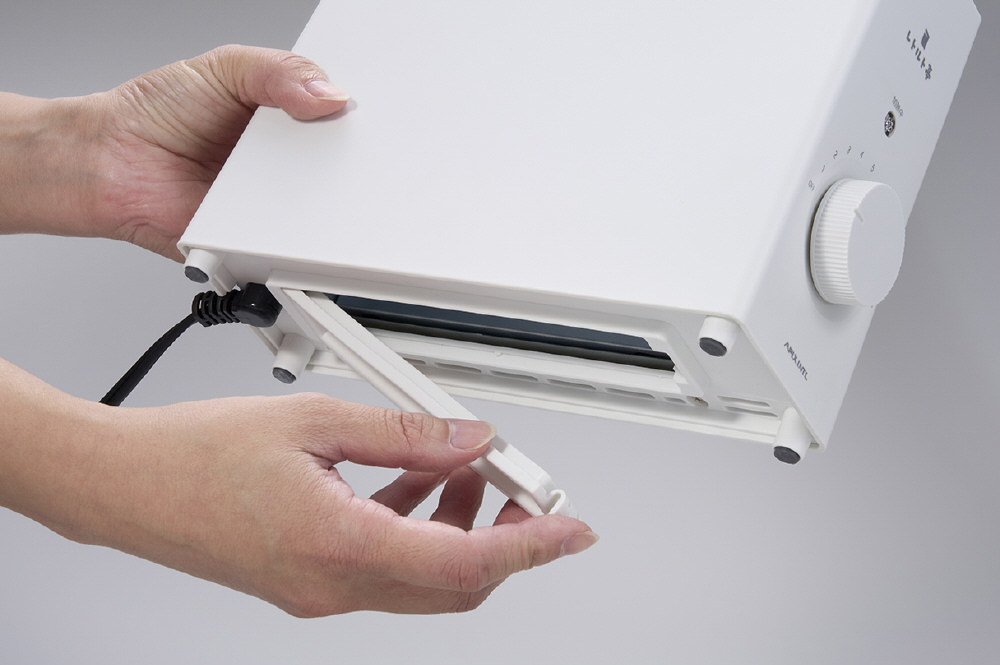 ■お手入れ簡単 底面のフタを開けることにより中のお手入れがより簡単に。投入口にもフタを追加し、ホコリの混入を防止!