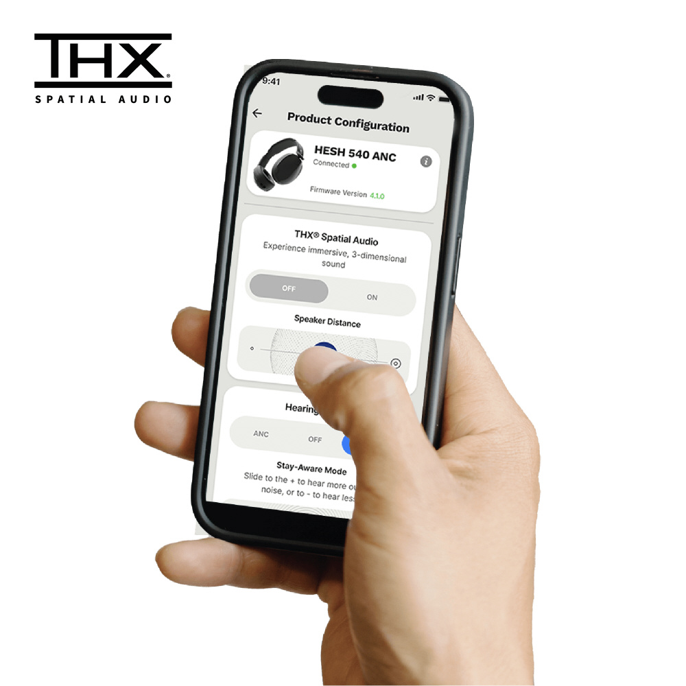 空間オーディオをスタイリッシュに。ノイズを遮断して、雰囲気を高めよう。アクティブノイズキャンセリングとTHX Spatial Audioを搭載したHesh540ANCは、ただ音楽を再生するだけではなく、その世界に没入させてくれる。音楽を楽しむときも、映画を一気見するときも、リラックスしたいときも、いつでも一日中、臨場感あふれる体験を。