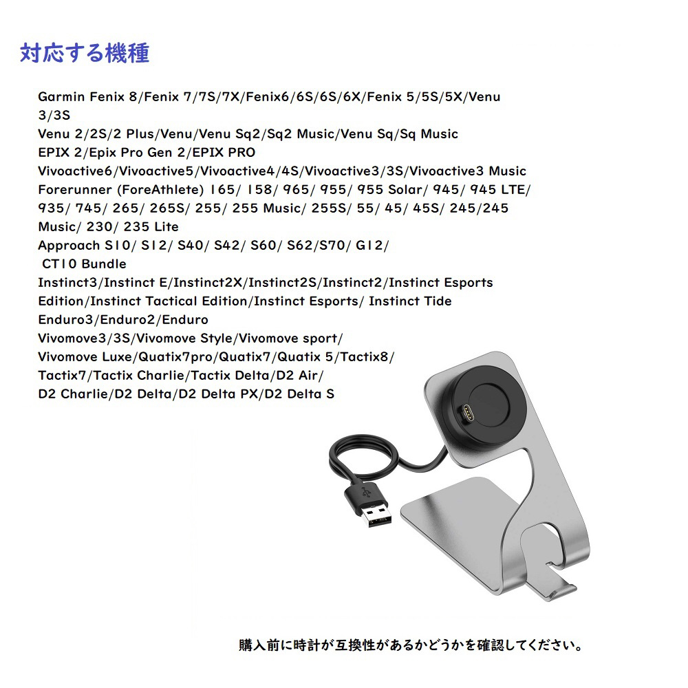 Garmin用 スマートウォッチ充電器スタンド(充電ケーブル付き) グレー