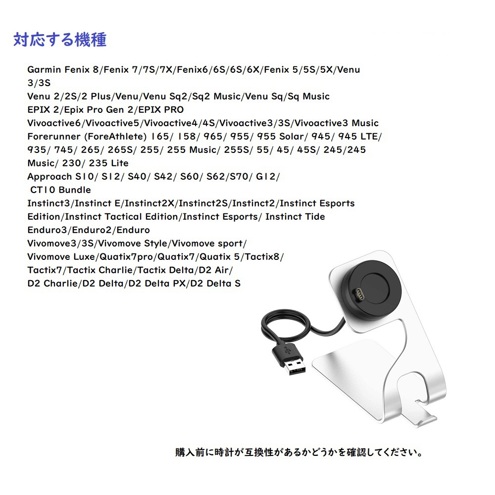 Garmin用 スマートウォッチ充電器スタンド(充電ケーブル付き) シルバー