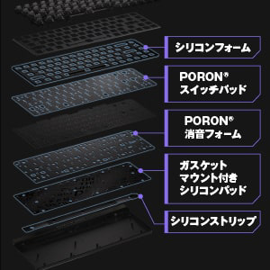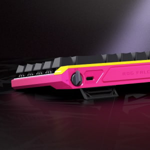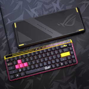 ROG Falchion Ace HFX ZywOoは、65%ラピッドトリガー搭載ゲーミングキーボード。潤滑済みのROG HFX磁気式キースイッチや、直感的なタッチパネル、8000Hzの超高速ポーリング、静音性を高める5層構造とシリコンガスケット、2つのUSB-Cポート、3段階の角度調整、専用カバーを搭載。