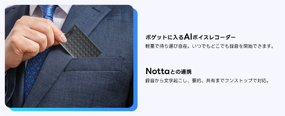議事録の「できない」をなくすカード端末:Notta Memo