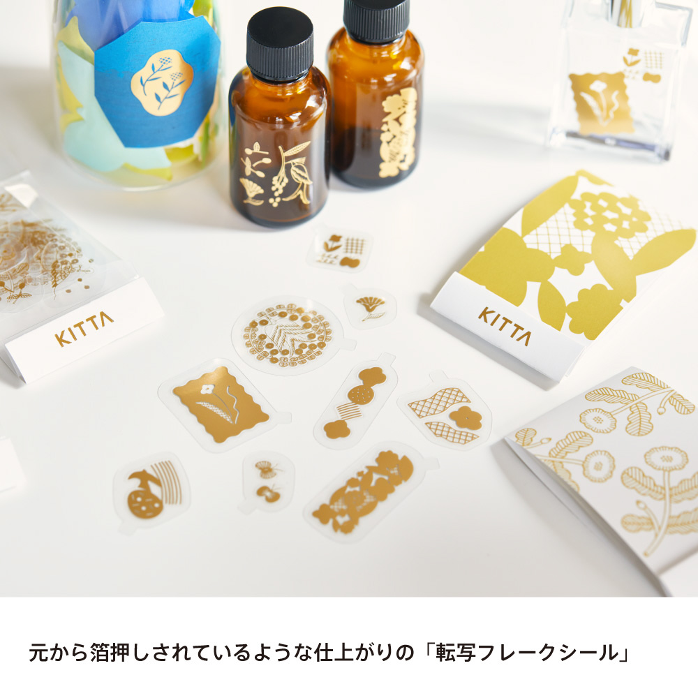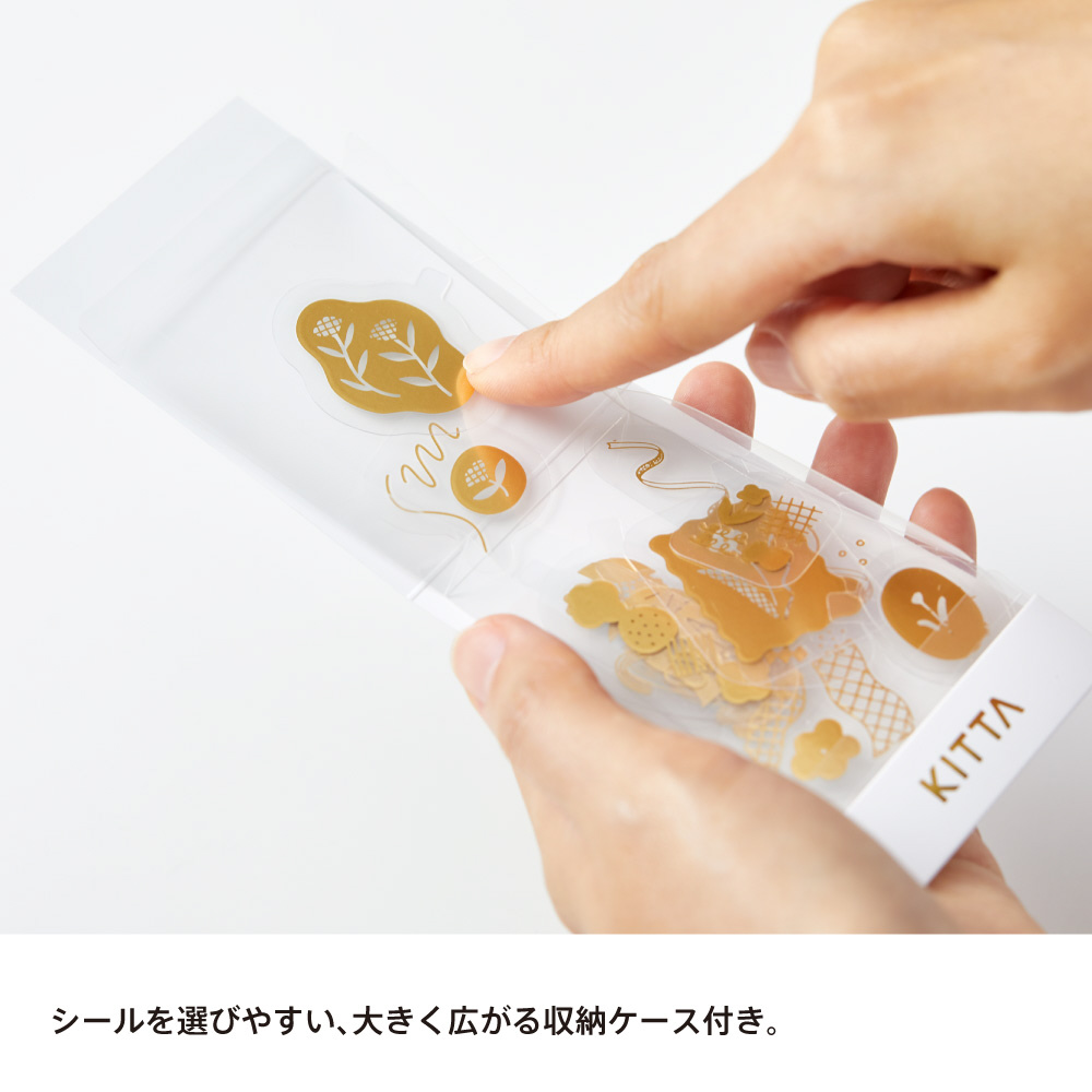 元から箔押しされているような仕上がりの転写シール。持ち運びがしやすい収納ケース付きです。