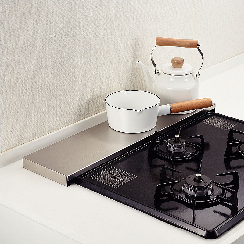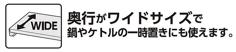 奥行がワイドサイズで鍋やケトルの一時置きにも使えます。