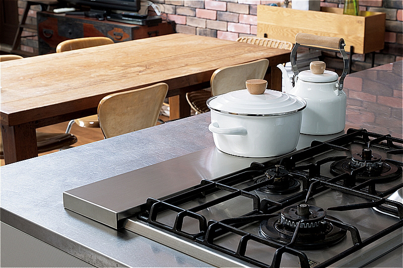 奥行がワイドサイズで鍋やケトルの一時置きにも使えます。
