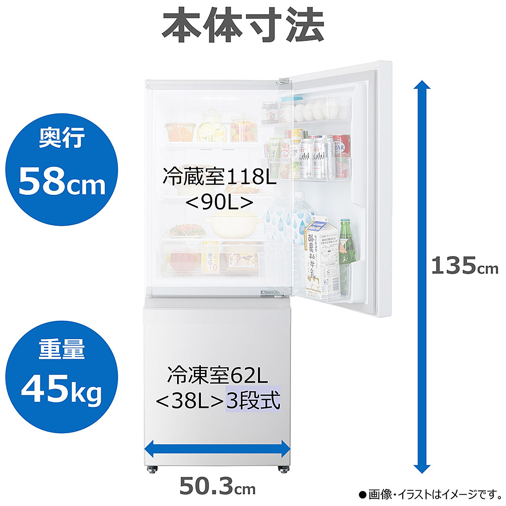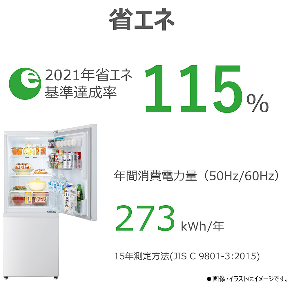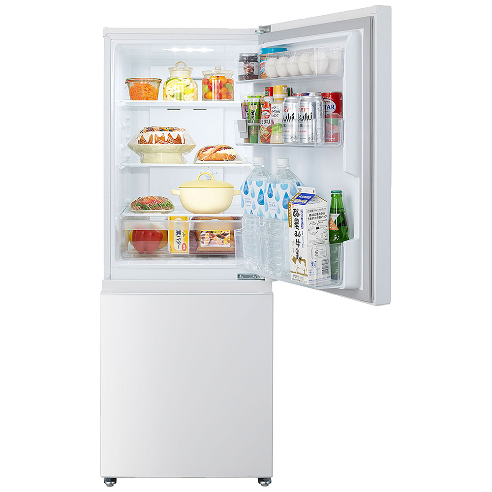 使いやすさにこだわり、シングルライフにぴったりな2ドアタイプ。2Lのペットボトルが3本も入るほか、冷蔵室のガラス棚も3段タイプ。コンパクトなのに使いやすい。