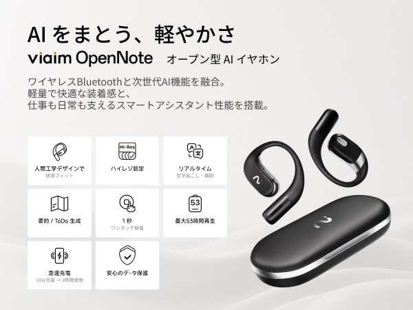 | 商品名 | AIイヤホンレコーダー OpenNote-Black ブラック XFVI-E97 [Bluetooth対応 /ハイレゾ対応] |