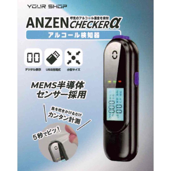 アルコール検知器 ANZEN CHECKERα ブラック×パープル YSAC-04