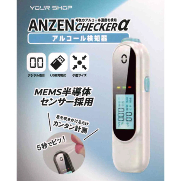 アルコール検知器 ANZEN CHECKERα ホワイト×ライトブルー YSAC-05