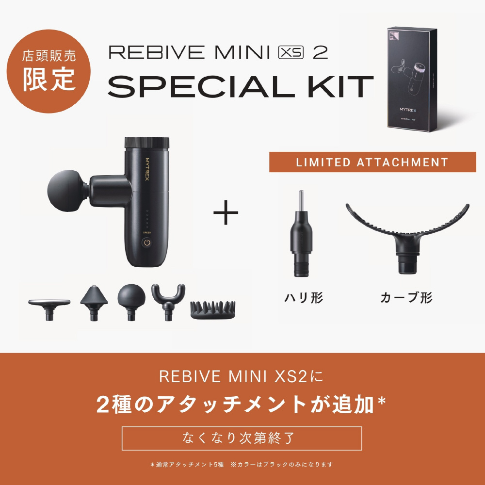 【速さ×深さ】新技術「手圧変動テクノロジー」搭載のコンパクトハンディガンに限定スペシャルキットが登場。REBIVE MINI XS2 に2種のアタッチメントが追加
