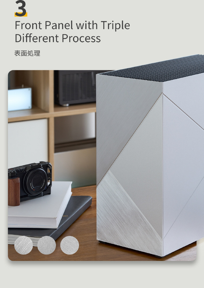 アルミヘアライン、ショットブラスト等アルミならではの処理を施したデザインケース。
