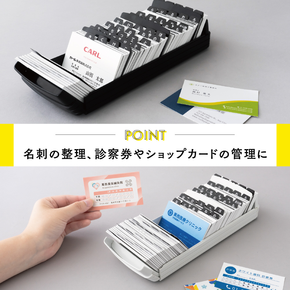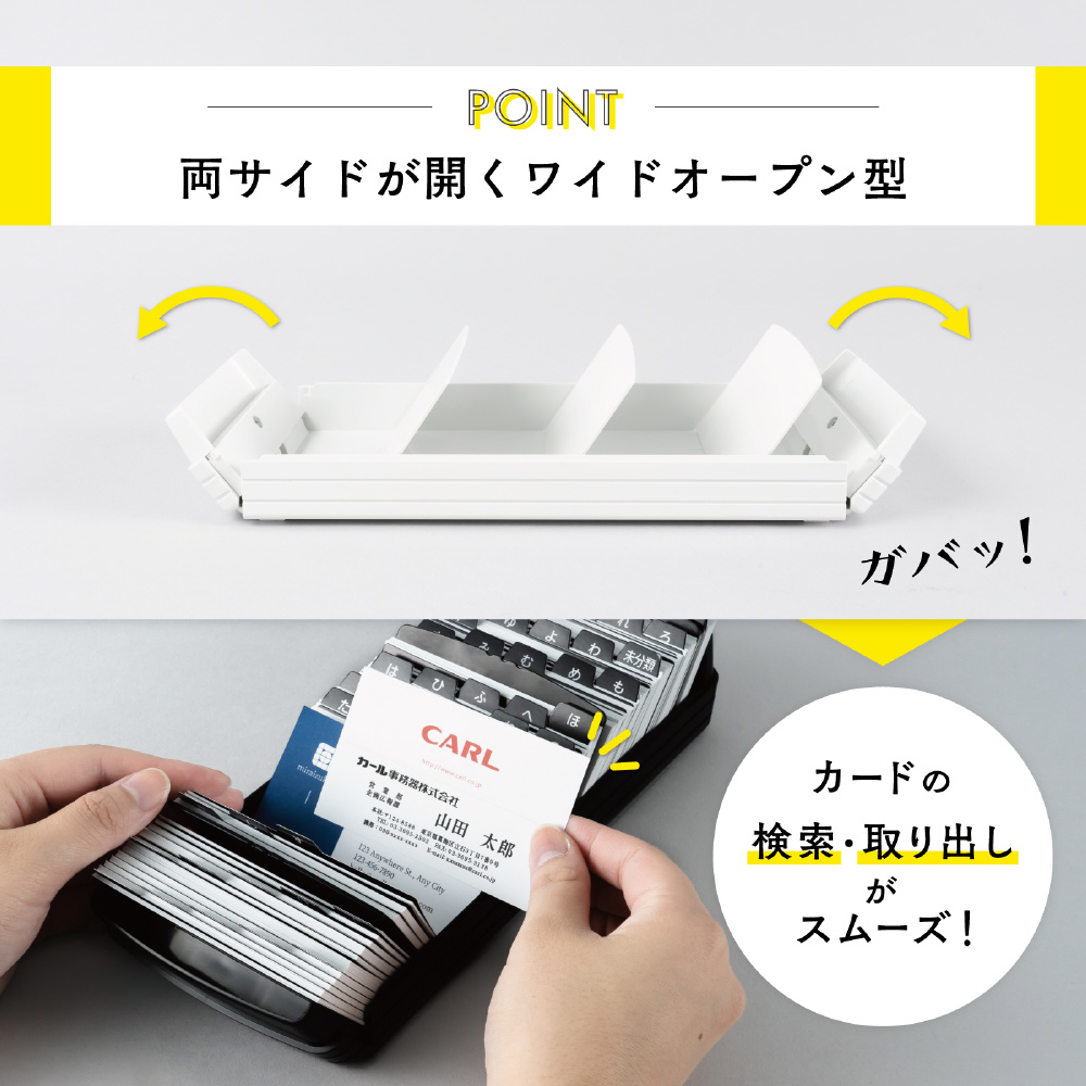 ●本体両側が外側に開くため、名刺が1枚ずつ検索しやすくなっている名刺整理ケースです。