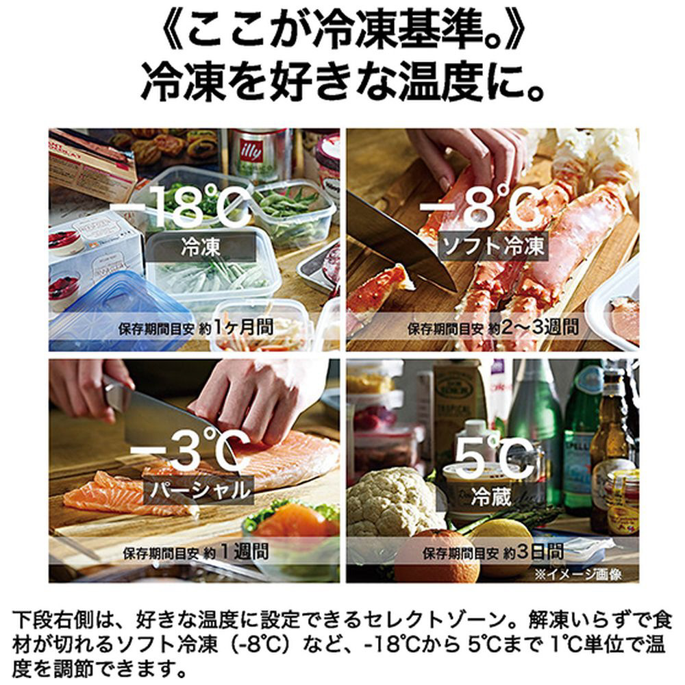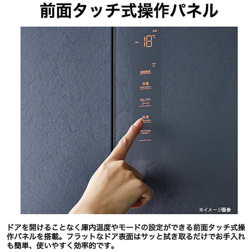 大容量の冷凍室が魅力の冷蔵庫。空間にフィットする薄型デザイン。