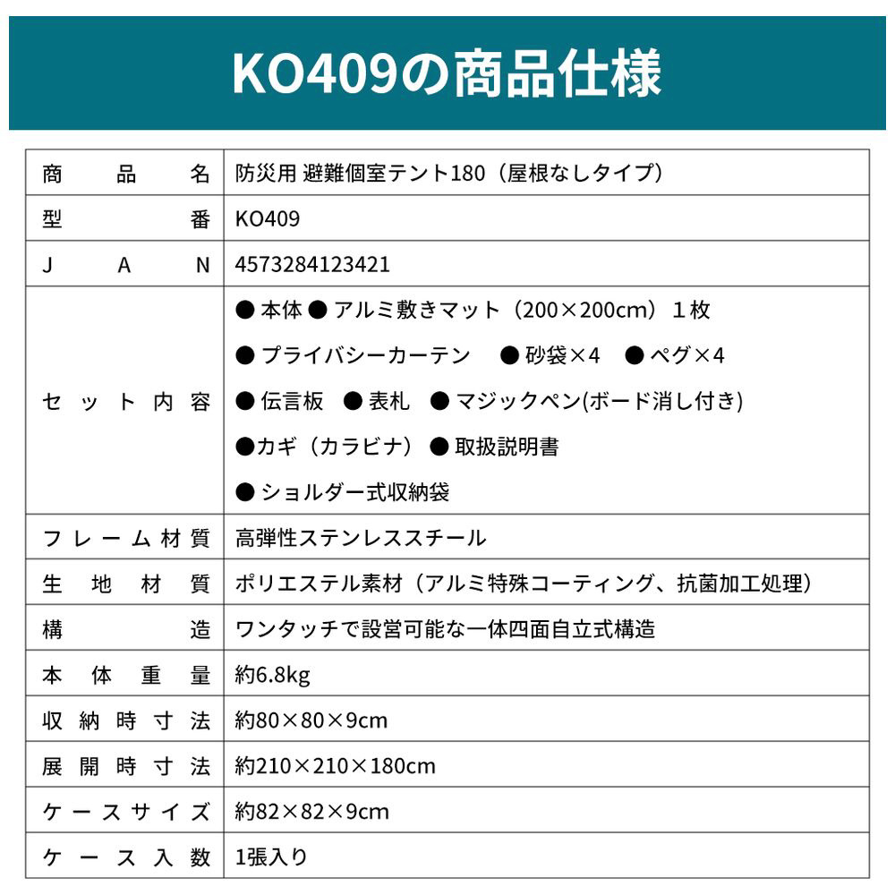 防災用 避難個室テント 180(屋根なしタイプ) RABLISS(ラブリス) KO409