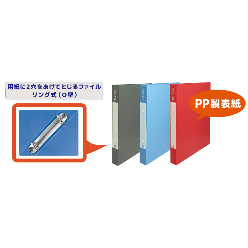 用紙に2穴をあけてとじるリング式(O型)ファイル、約200枚のコピー用紙収容