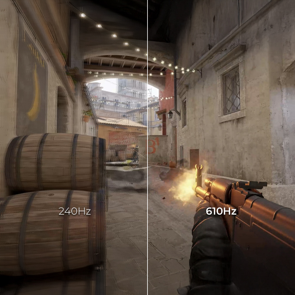 革新的な610Hzリフレッシュレートと0.3msの超高速応答により、圧倒的なスピードと鮮明な映像を実現。
