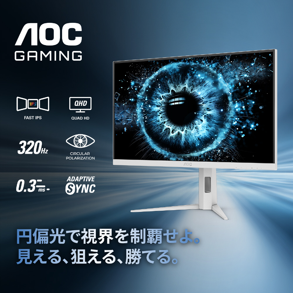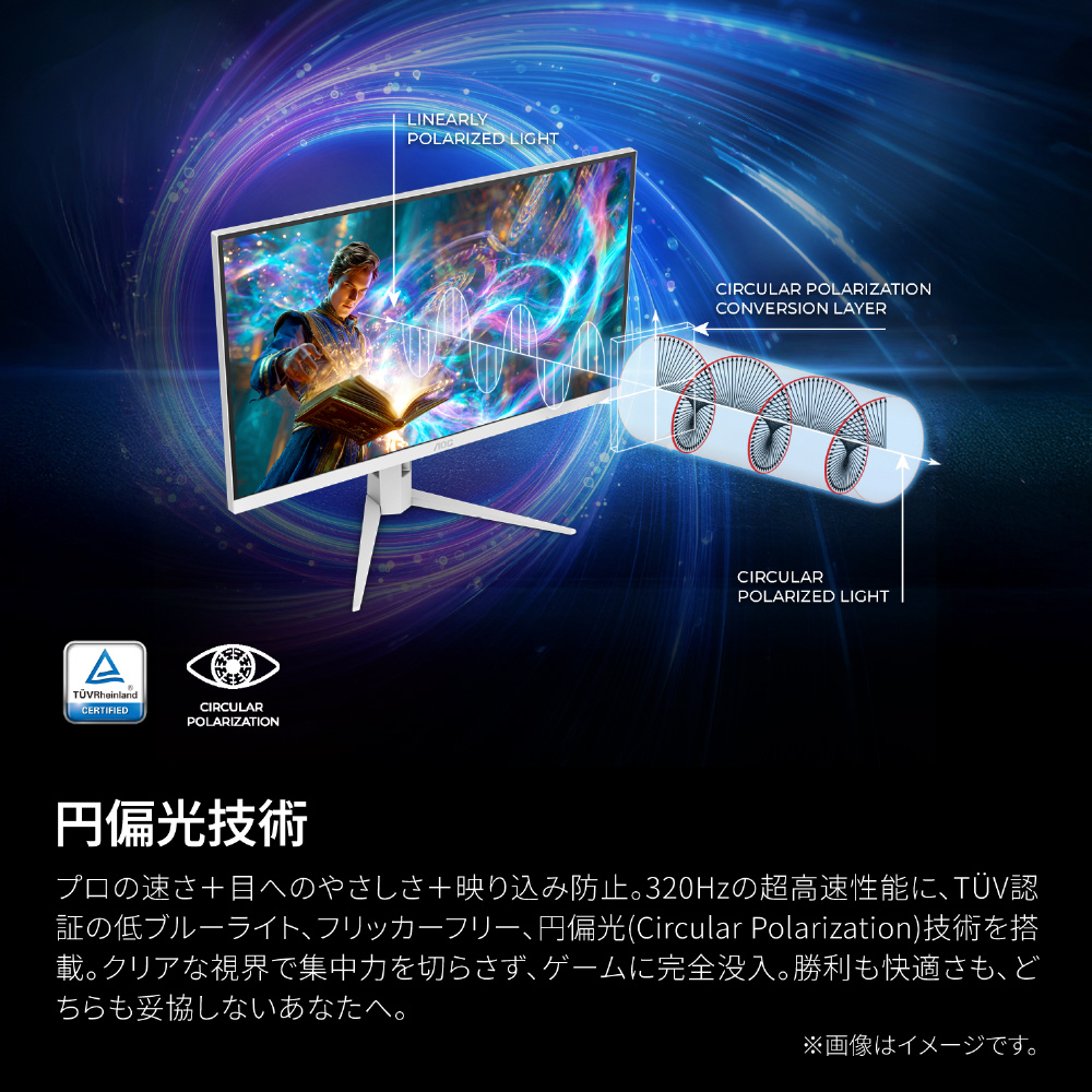 TUV認証「円偏光」対応320Hzゲーミングモニター。