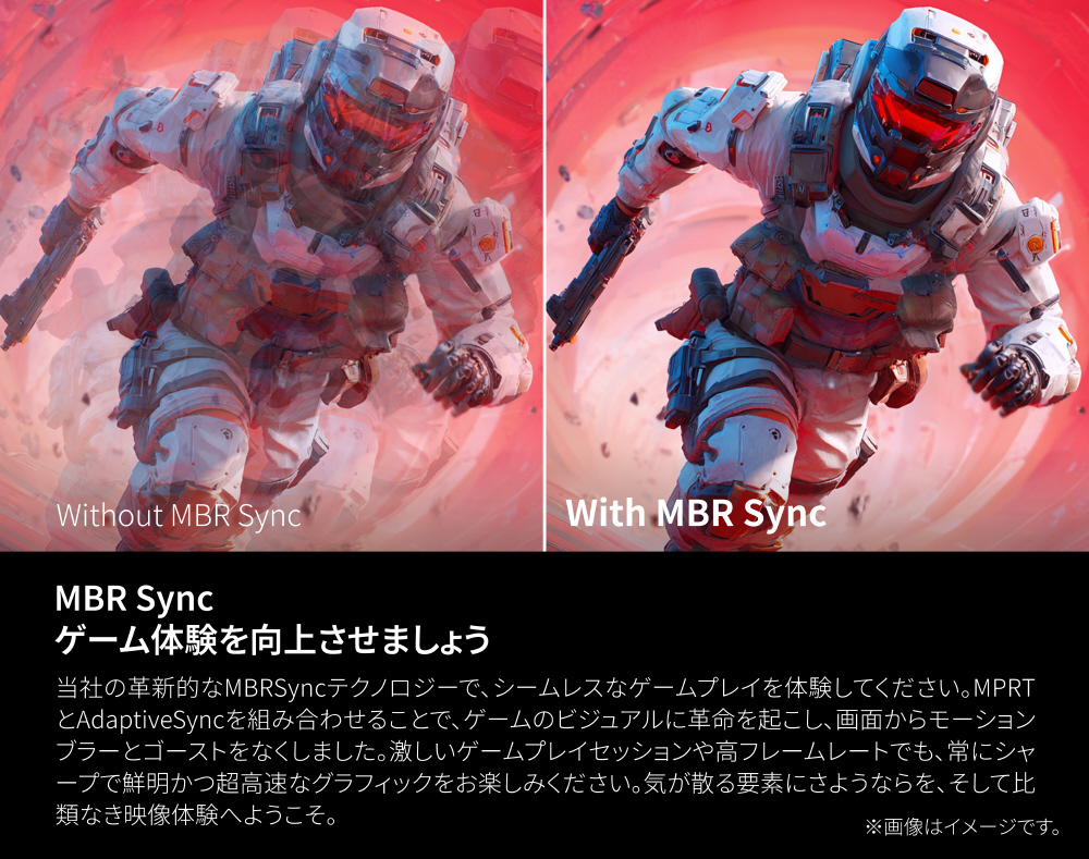 MPRTとAdaptive Syncを組み合わせたMBR Sync技術で、モーションブラーやゴーストを抑制。