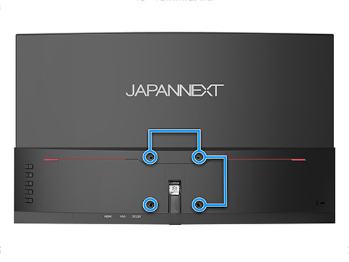 ■75x75mmのVESAマウントに対応しており、別売りのモニターアームなどに使用が可能です。