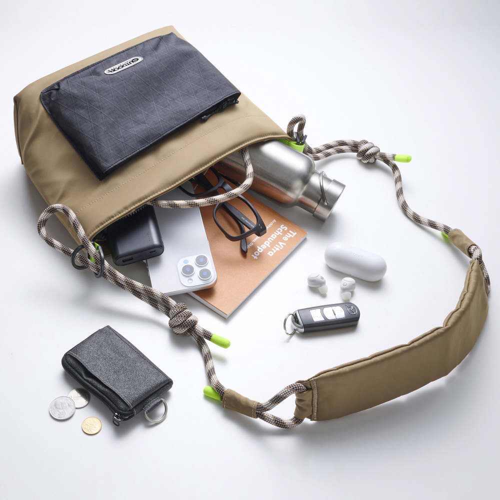 タウンユースはもちろん、キャンプやフェスなどアクティブなレジャーシーンにもぴったりです。折りたためる構造なので、旅行や出張時に持っていくサブバッグとしても活躍します。