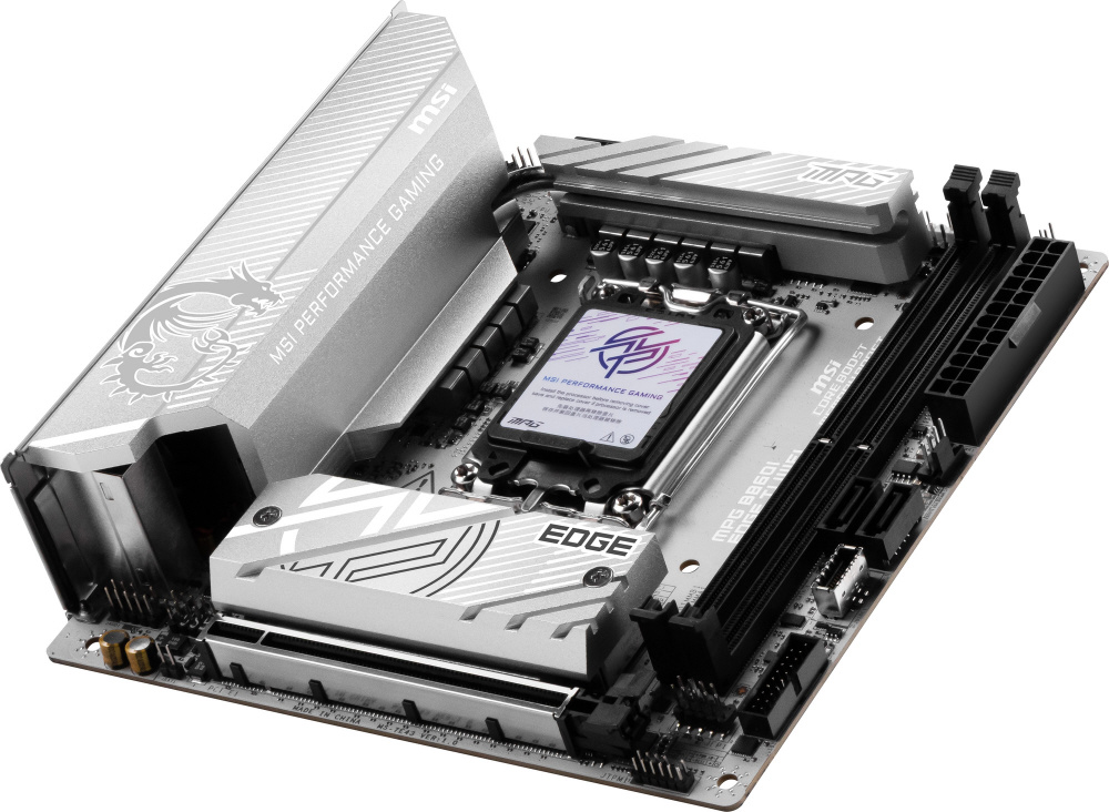 Intel B860チップセット搭載。ホワイトシルバーのヒートシンクを搭載し、優れたゲーミング体験を実現するMini-ITXマザーボード