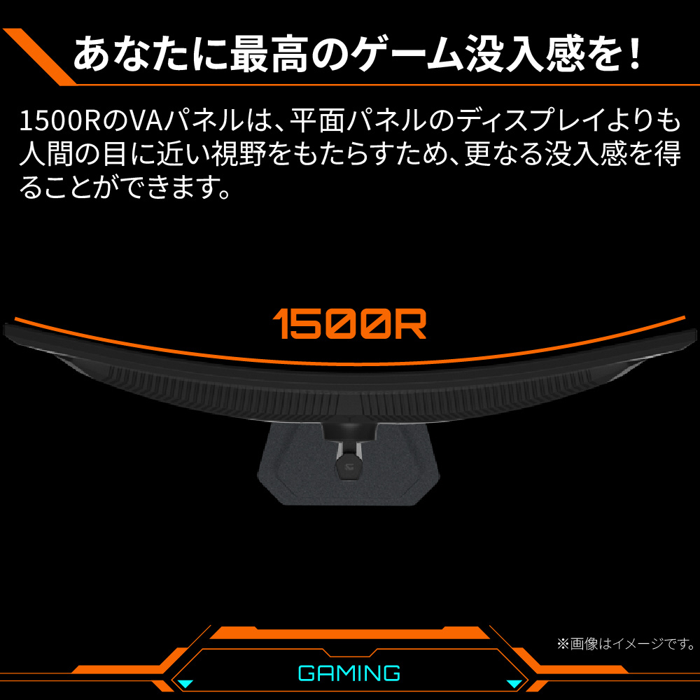 34 インチ 1500R VA パネルは、フラットなモニターに比べて人間の視覚に近い表現になり、より没入感のあるゲーム体験をお楽しみいただけます。