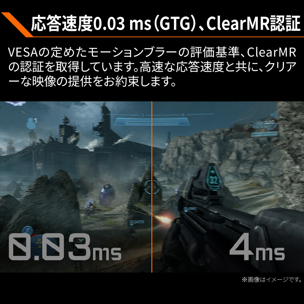 HDRピーク1000nitsモードによる優れた明るさ、強調されたコントラスト、最適な鮮明さで、没入感のあるゲーム体験を実現します。