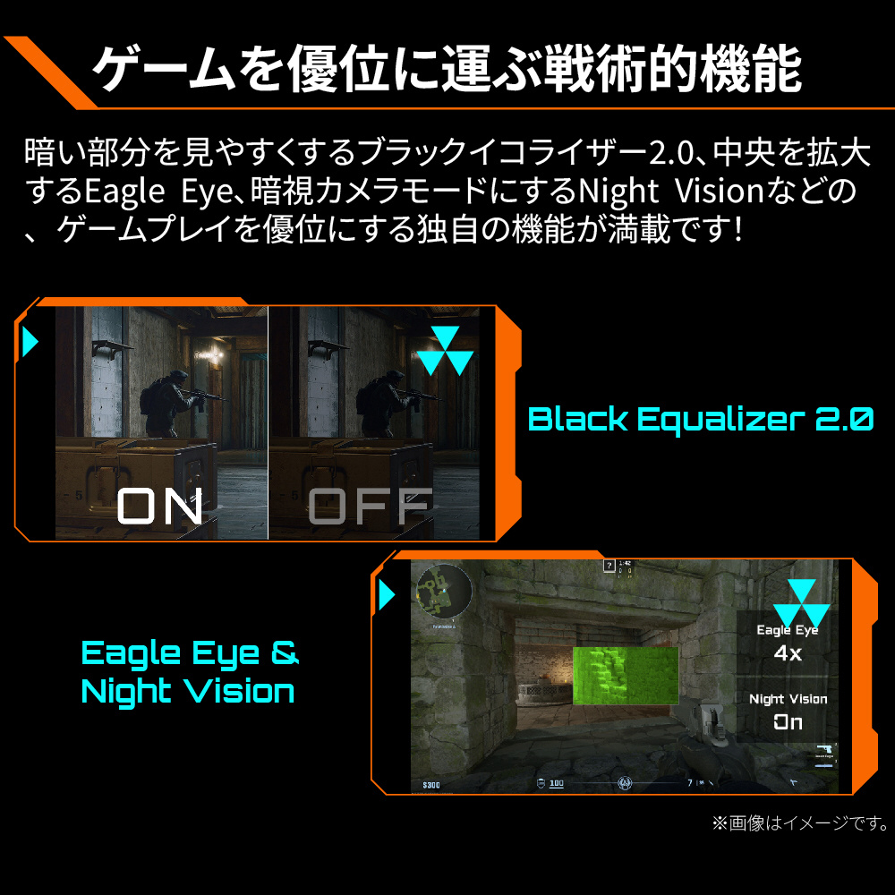 低照度環境下での視認性を強化し、細部を強調します。画面全体を露出しすぎることなく、最も深い闇に潜む敵を発見可能にします。