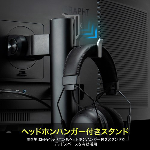 置き場に困るヘッドホンもヘッドホンハンガー付きスタンドでデッドスペースを有効活用。
