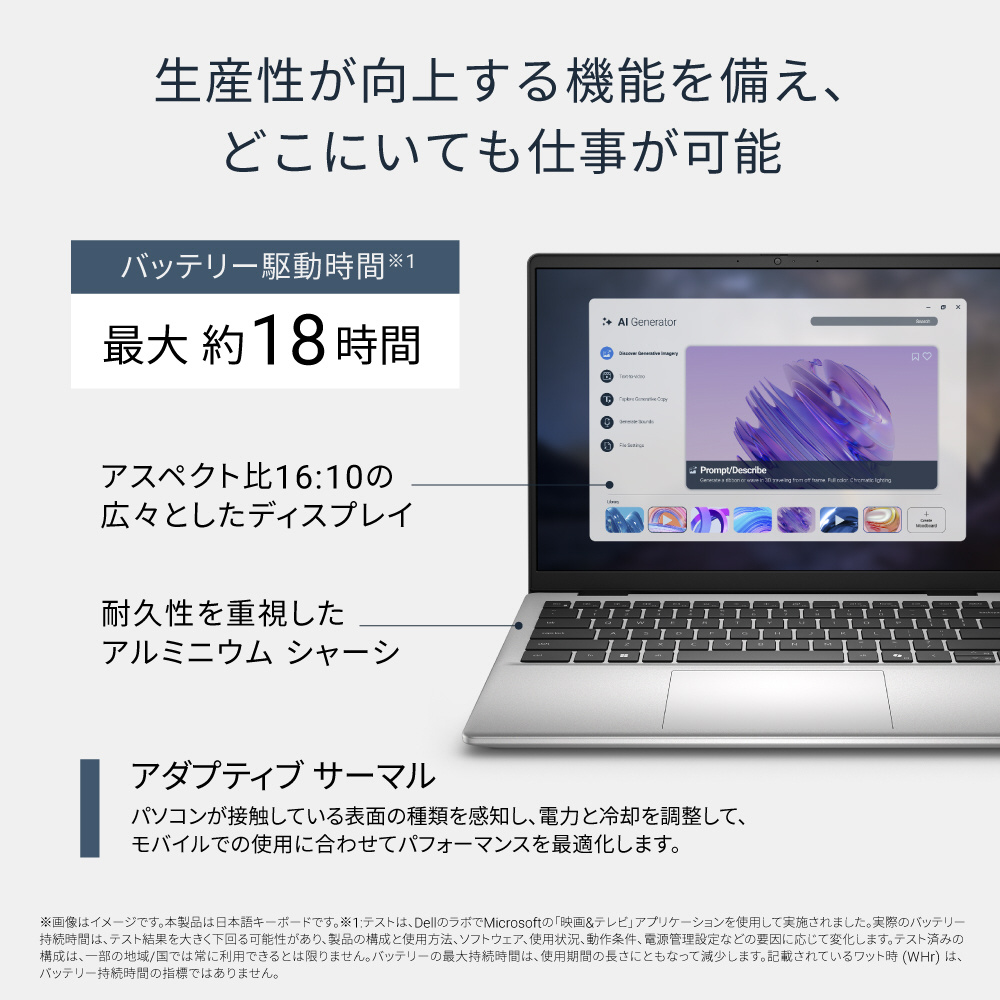 パソコンが接触している表面の種類を感知し、電力と冷却を調整して、モバイルでの使用に合わせてパフォーマンスを最適化します。