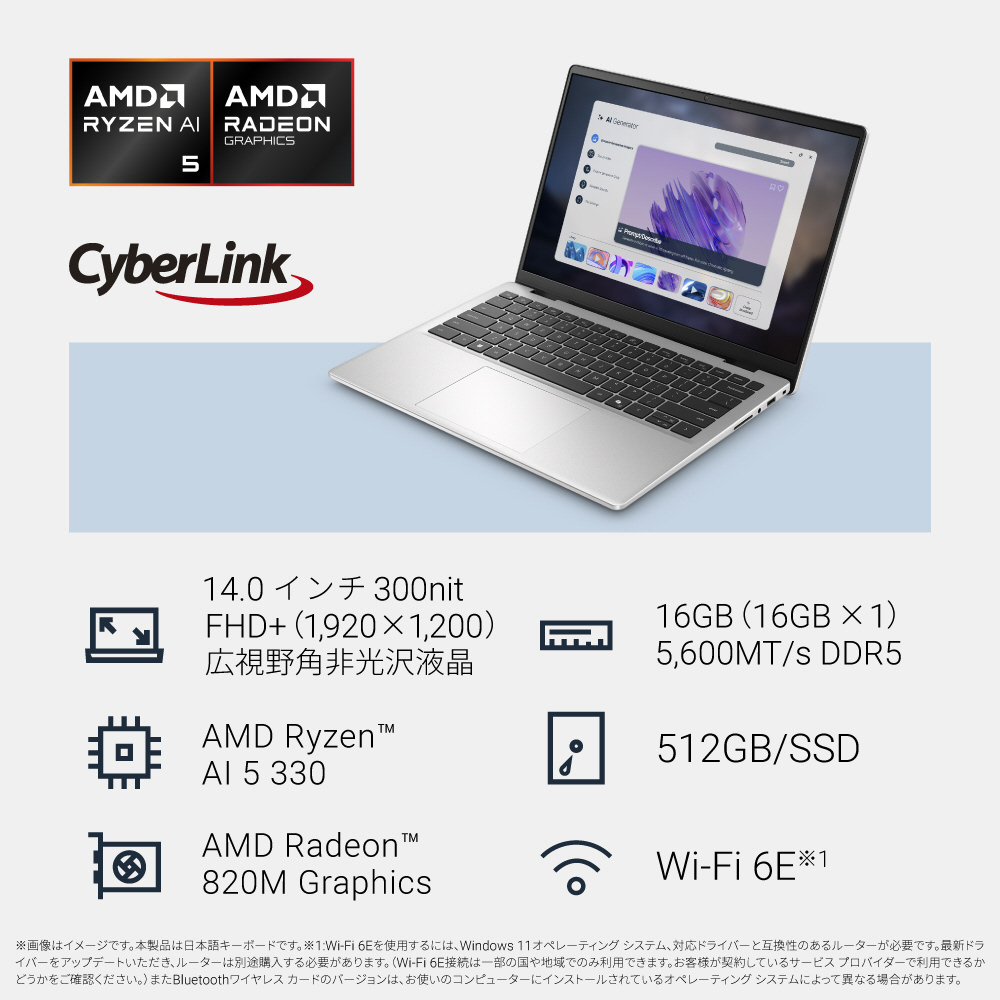 DELL(デル) ノートパソコン Dell 14(DC14255) プラチナシルバー MCD44-FWSC [14.0型 /Windows11 Home /AMD Ryzen AI 5 /メモリ:16GB /SSD:512GB/日本語版キーボード /2025年秋冬モデル]