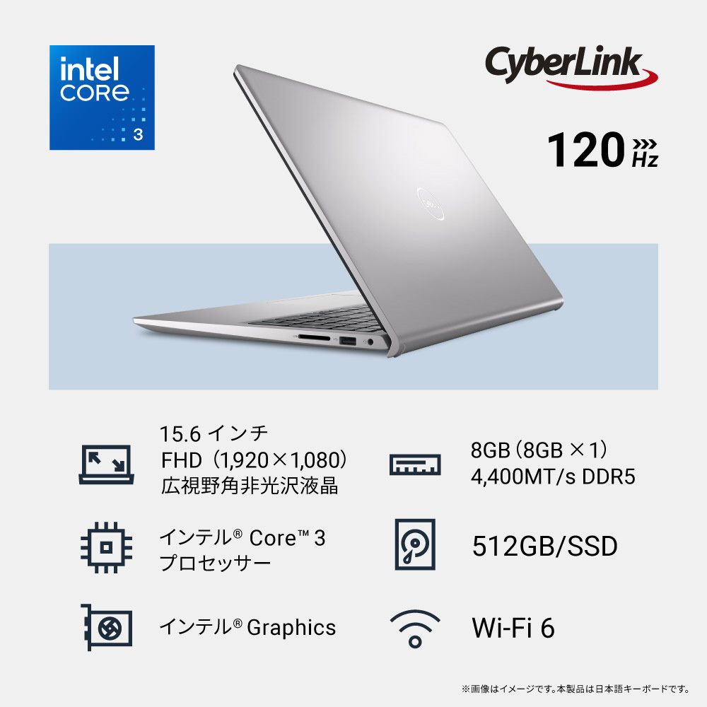 インテル プロセッサーを搭載し、日常的なコンピューティング向けに設計されたDell 15で、To Doリストをすばやく片付けましょう。カラーは、プラチナ シルバーとテクスチャー仕上げのカーボンブラックからお選びいただけます。