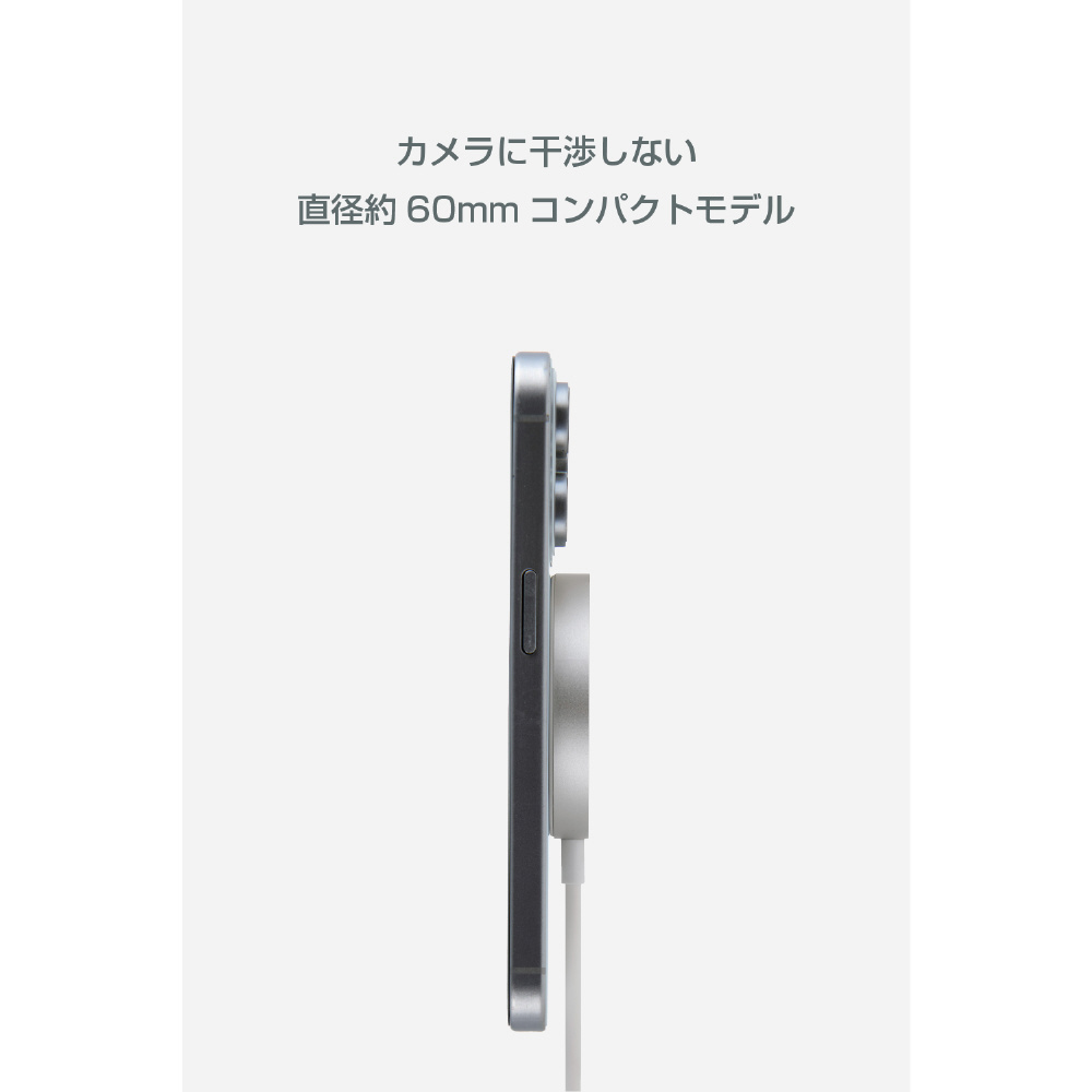 iPhoneの背面カメラと干渉しない、直径約60mmのコンパクトサイズです。