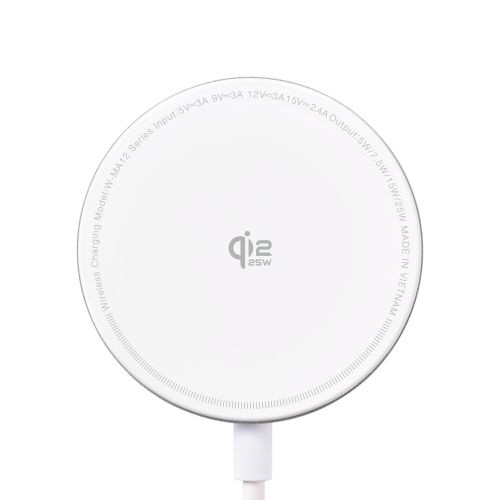 マグネットで対応するスマートフォンに固定するだけで高速充電できる、Qi2 25W規格対応のワイヤレス充電器です。