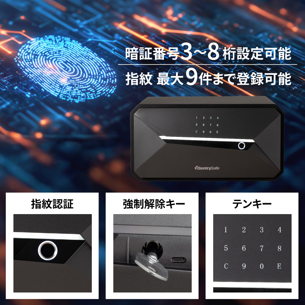 | ロック方式 | 鍵式+指紋照合式+テンキー式 |
