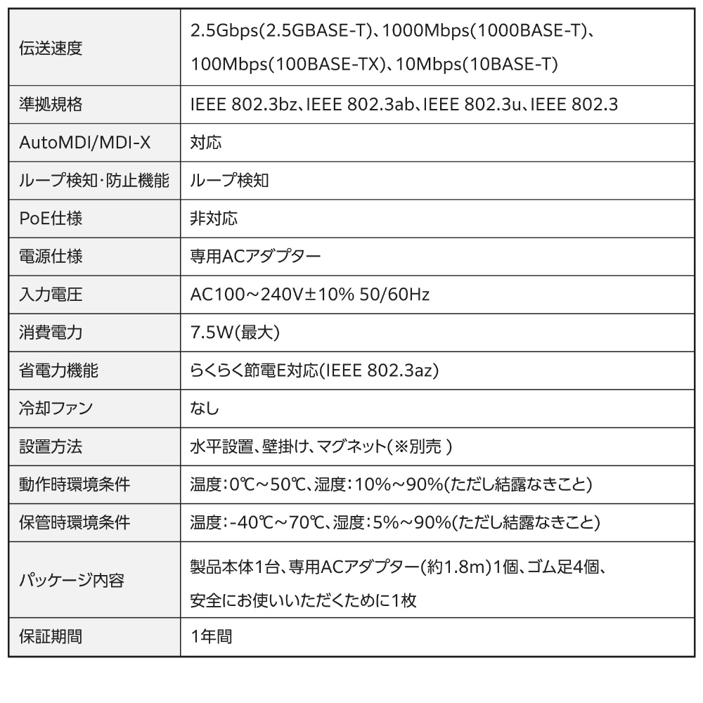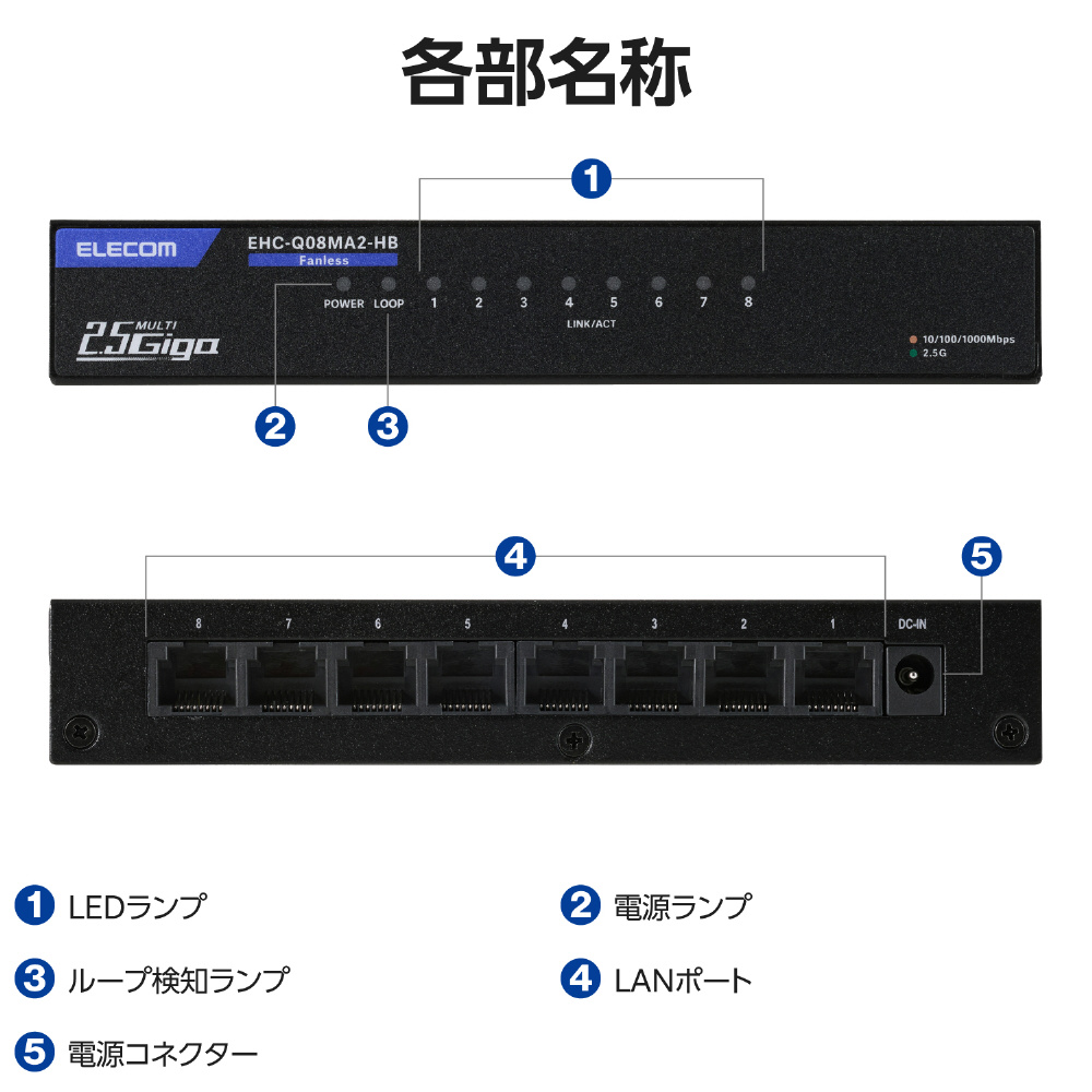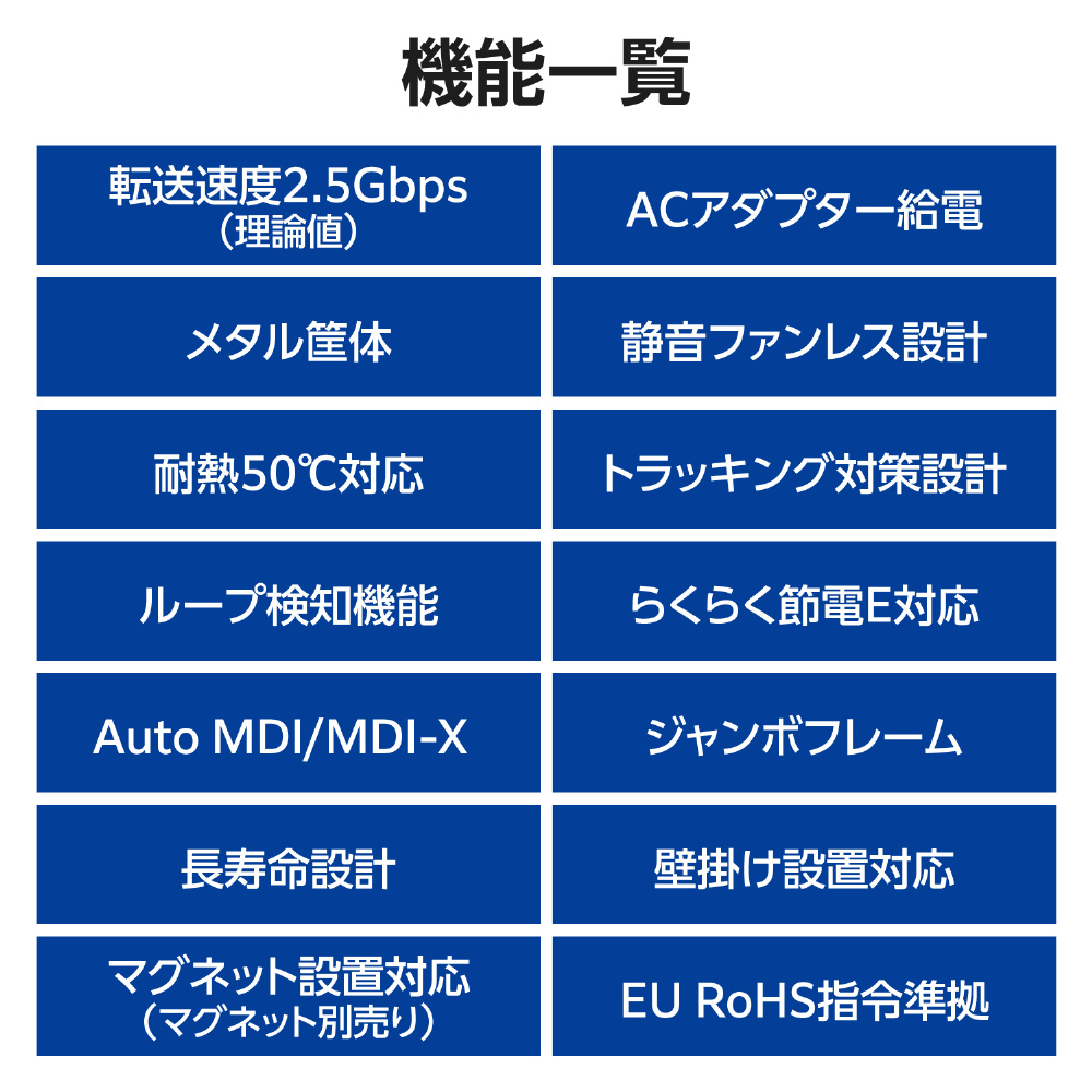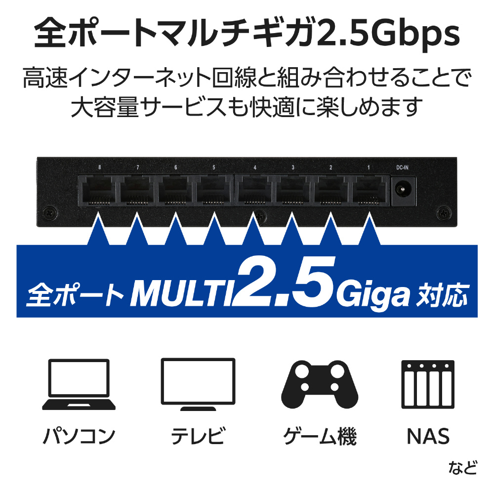 全ポート2.5Gbps対応の8ポートスイッチングハブ。