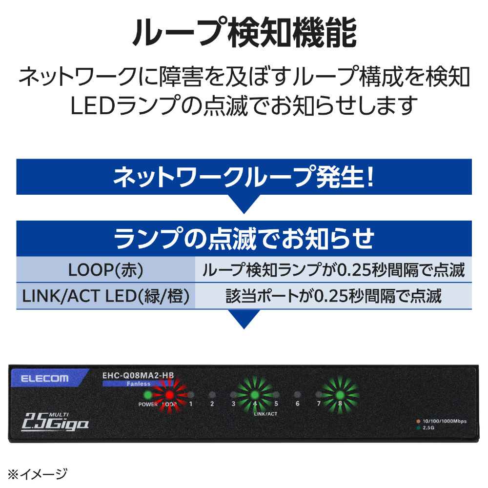 LEDランプの点滅によりネットワークループ発生をお知らせし、ネットワーク障害の解消を促します。
