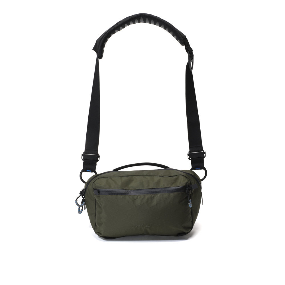 グラギアがはじめて手がけたスリングバッグです。軽量でありながら耐久性と耐候性に優れた非常に丈夫な生地、X-Pac? VX-21を採用。