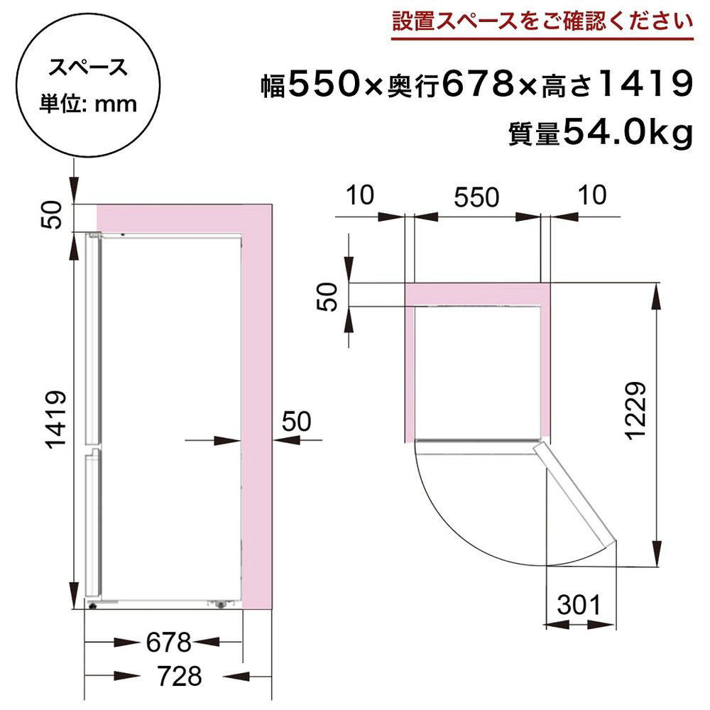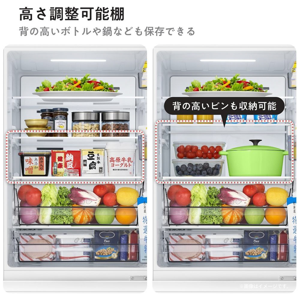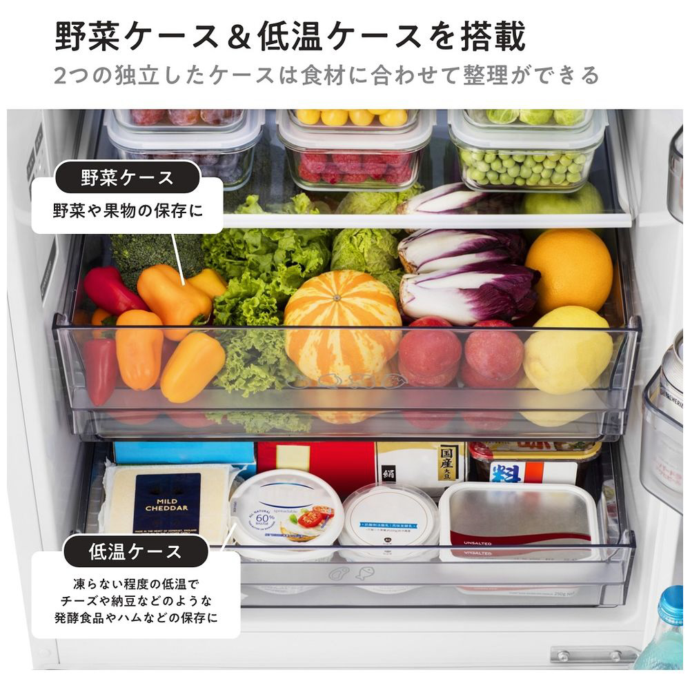 容量を保ったまま低く設計されたスタイリッシュなデザインのボディは、小柄の方が背伸びをしなくても、最上段の奥まで見渡せて庫内の奥まで手が届く設計となっています。