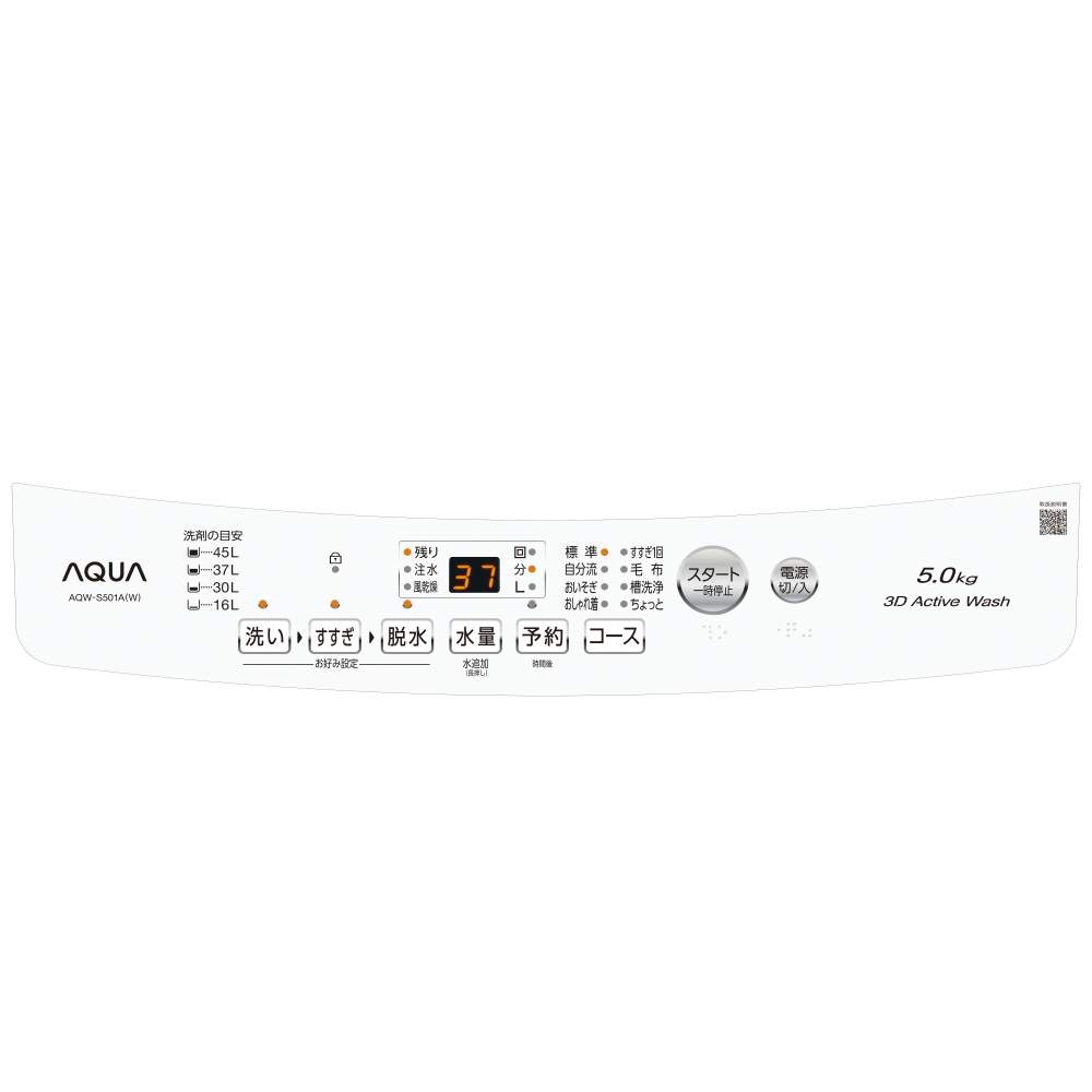 | 商品名 | 全自動洗濯機5Kg AQUA ホワイト AQW-S501A(W) [簡易乾燥(送風機能) /上開き] |