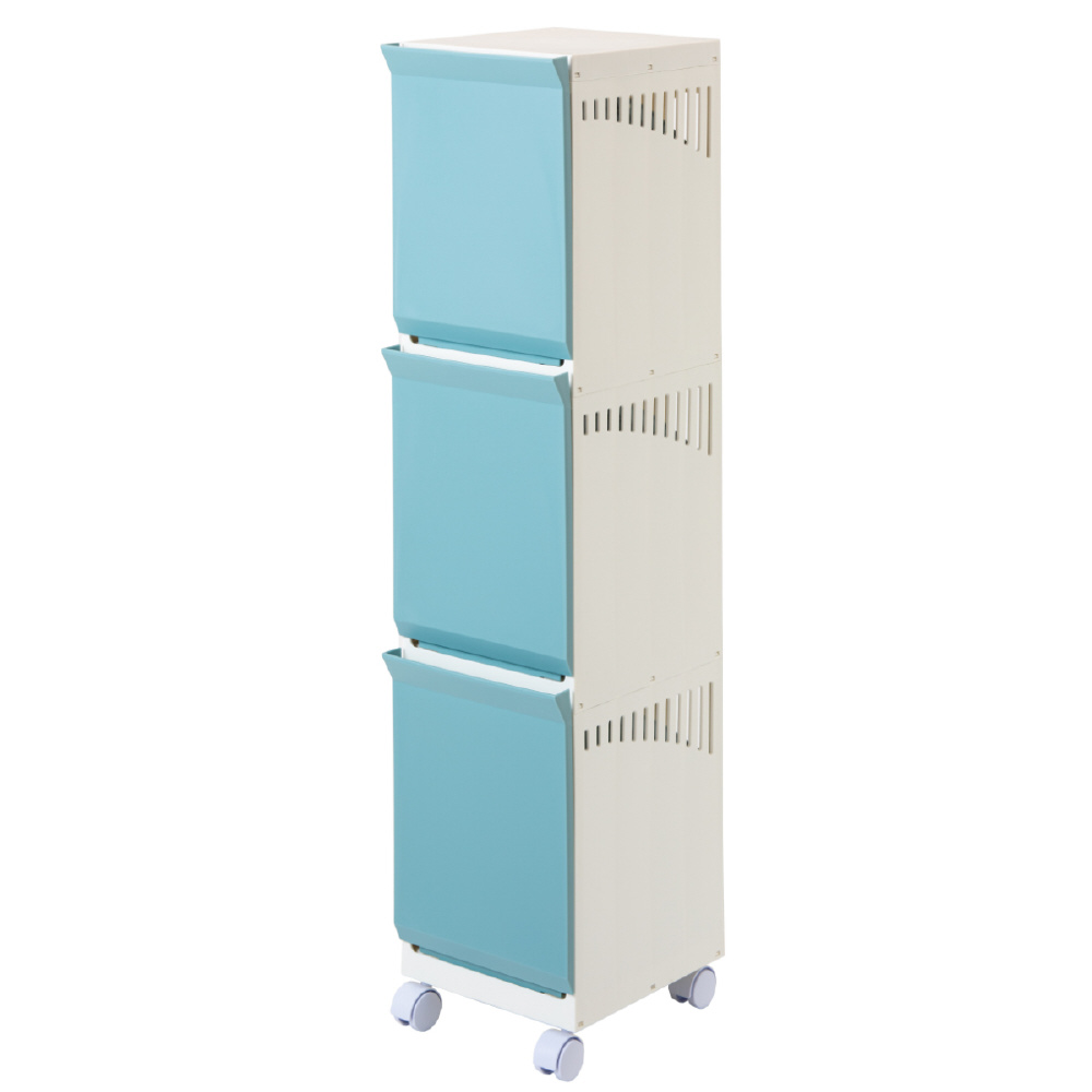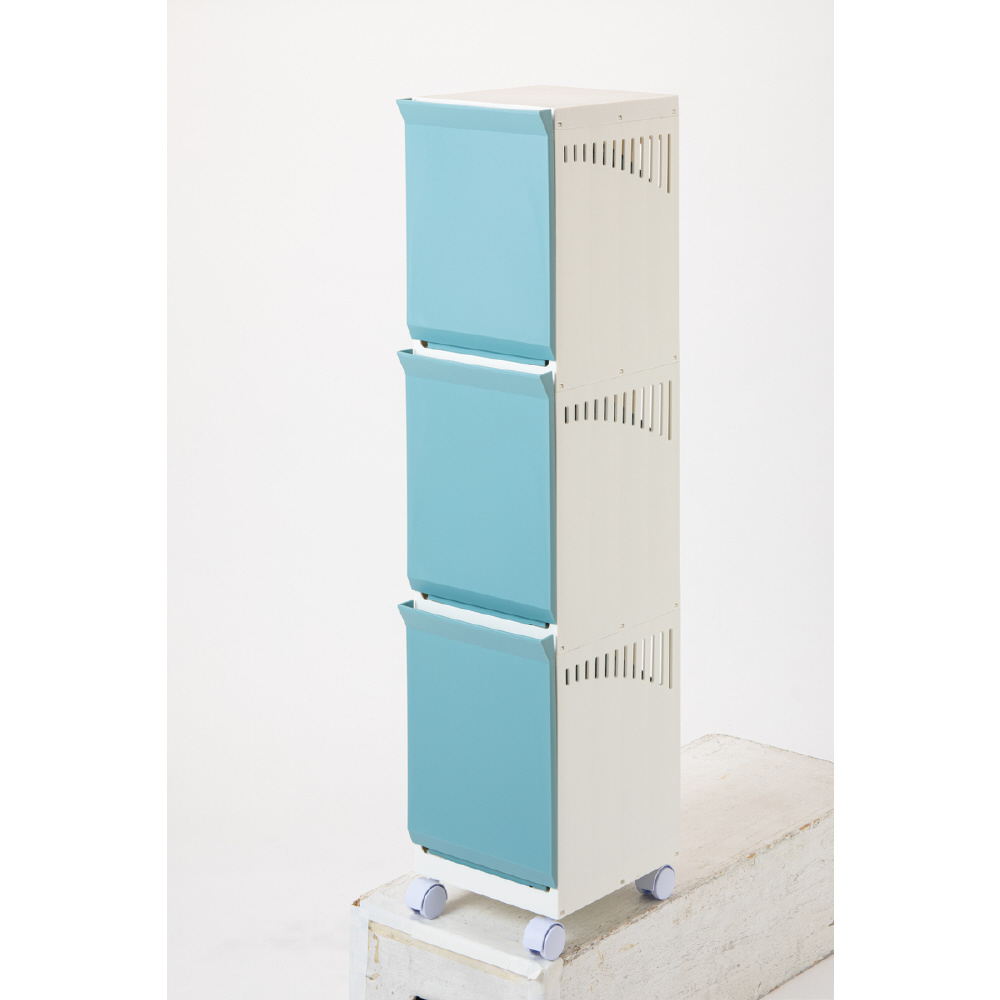 ランドリーボックス Clevan Half 3段 ランドリーラック 洗濯かご キャスター付 ブルー