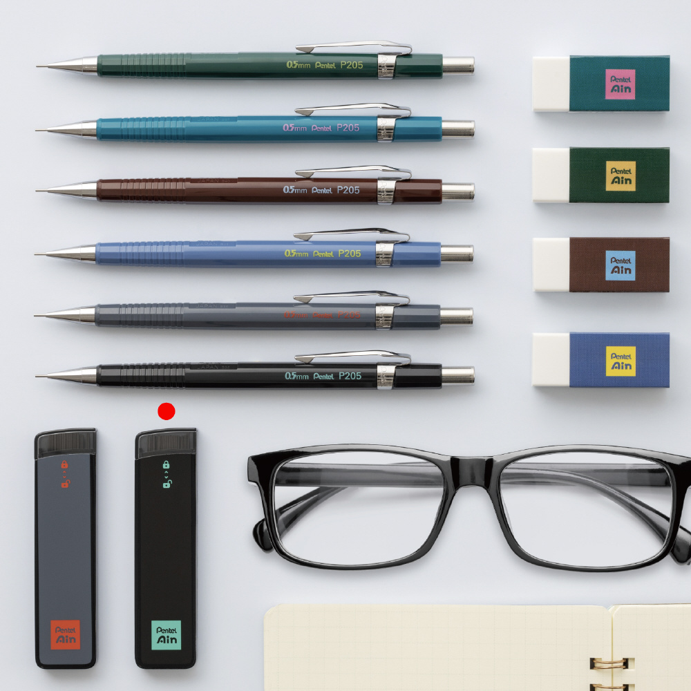 「シャープペン P205」は今年2025年で発売から55年となります。今なお世界中で愛されるシャープペンシルのベストセラーです。この度、ネオクラシカルシリーズとして6色の限定モデルが登場。シャープペンシルと合わせて持てるペアデザインのシャープペン替芯と消しゴムも同時発売です。