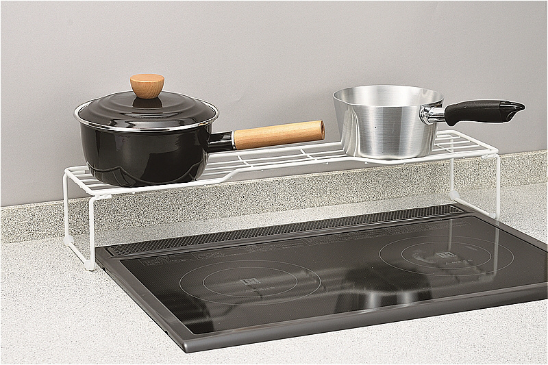 ビルトインタイプのコンロ。奥のスペースを有効活用、すべり止め付。耐荷重(5kg)以内で使用してください。耐熱温度の低い樹脂製品はのせないでください。溶けたり、変形する原因になります。グリル排気口の真上には設置しないでください。