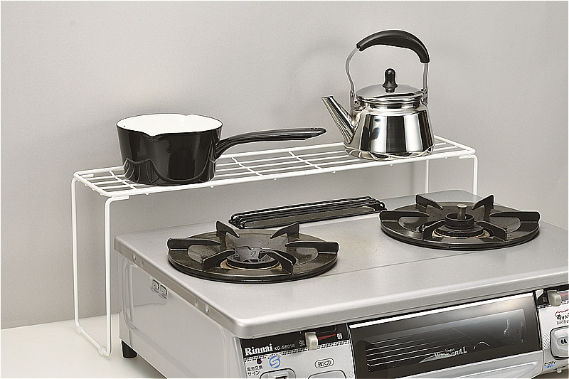 据え置きタイプのコンロ。奥のスペースを有効活用、耐荷重(5kg)以内で使用してください。耐熱温度の低い樹脂製品はのせないでください。溶けたり、変形する原因になります。グリル排気口の真上には設置しないでください。