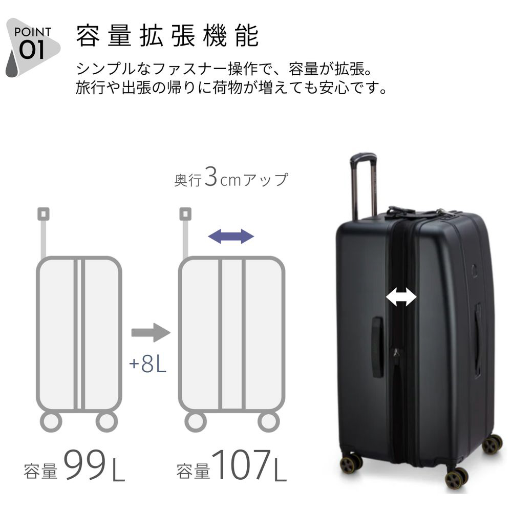 拡張機能付きスーツケース トランクXL 縦長キャリー Lサイズ カデンス(CADENCE) ブラック 167782800 [TSAロック搭載]