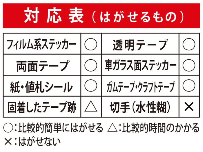 強粘着性シールに対応し、粘着剤に浸透して溶解することでパワフルにはがします。