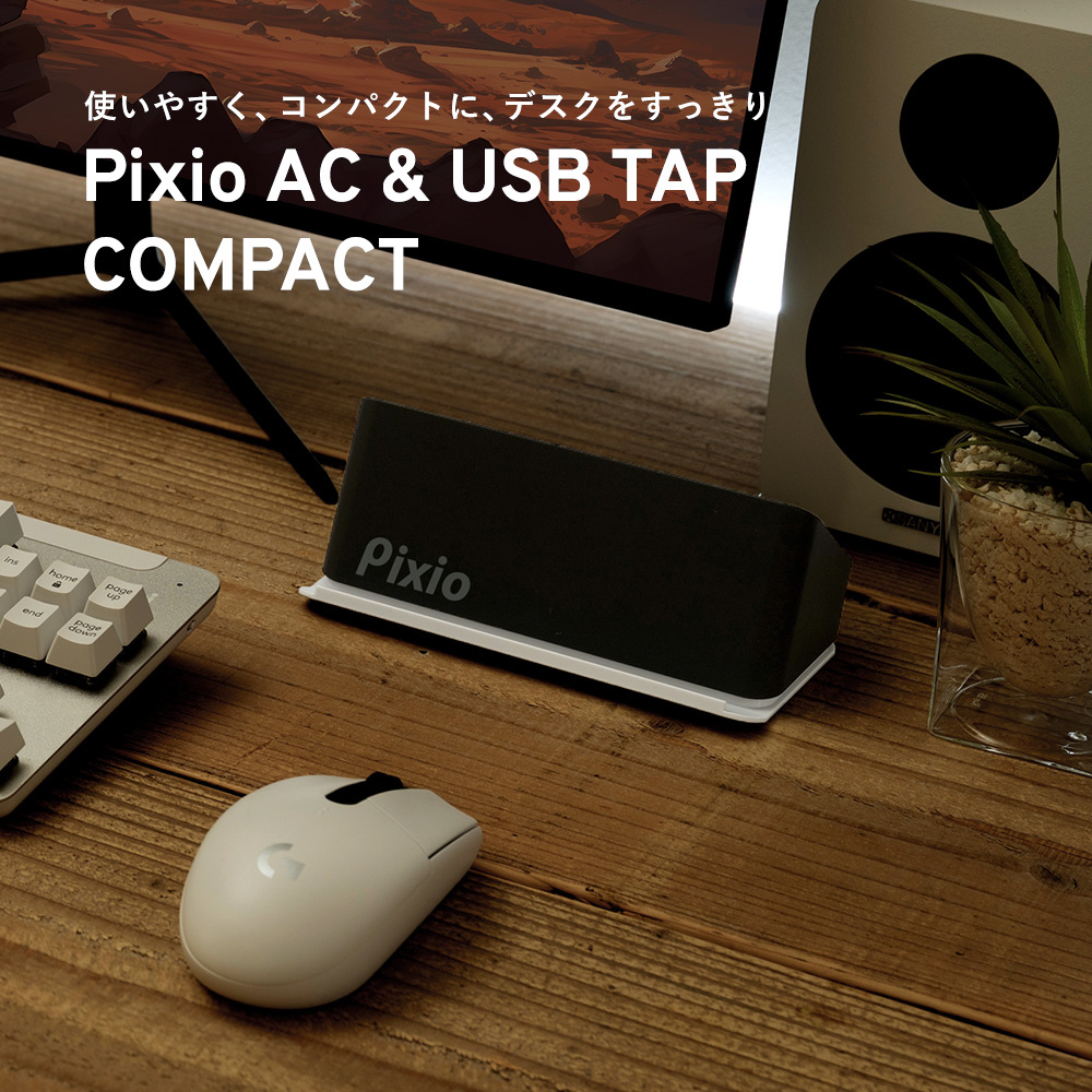 ケーブルだらけでごちゃごちゃしたデスク周りを、すっきり使いやすく。Pixio AC&USB Tap compactは、複数のデジタルデバイスを一括チャージできる充電ステーションです。