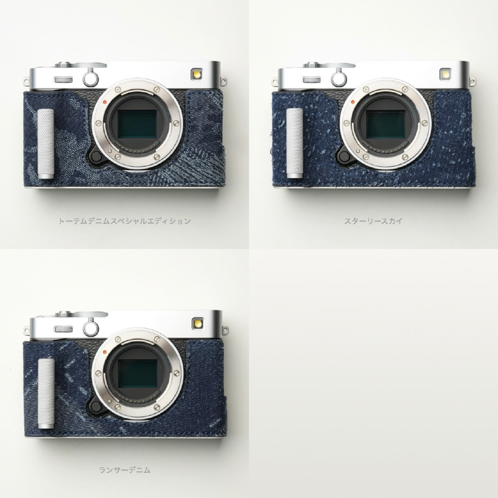 高品質なカウハイド(牛革)、プレミアムデニムを使用したフジフィルム X-E5専用のボディケースです