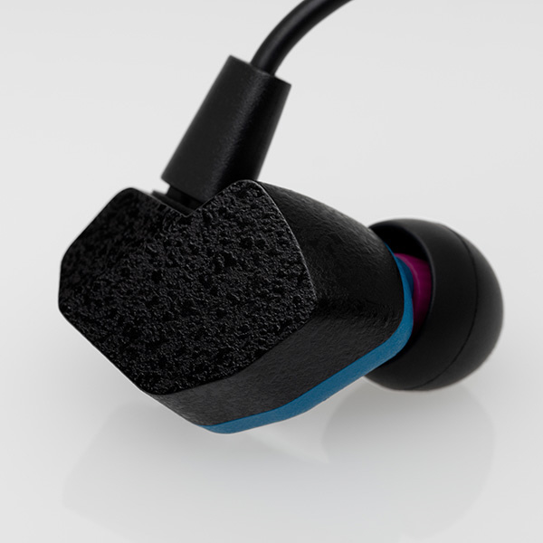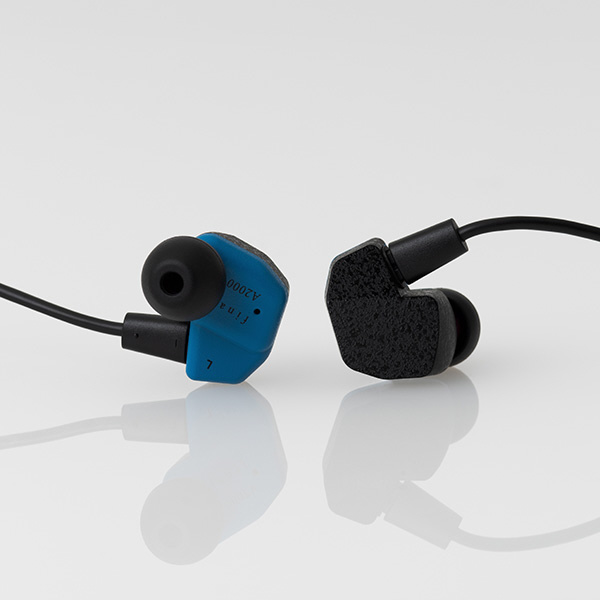 A2000では、B seriesの開発で確立したIEMの最適解である筐体設計をベースに、より優れた装着感を実現しています。イヤホンの装着感が優れているか否かは、圧迫感で決まります。人間工学を謳い有機的な形状を選択するなど、シリコンの反発力で保持する方法は一見正しく見えますが、常に耳に力がかかることとなり、気付かない内に耳へ負担を掛け、疲労が蓄積します。有機的で大きな面で耳に接する形状に比べ、接触面積を限定する形状により、圧迫感の無い装着感を目指しました。