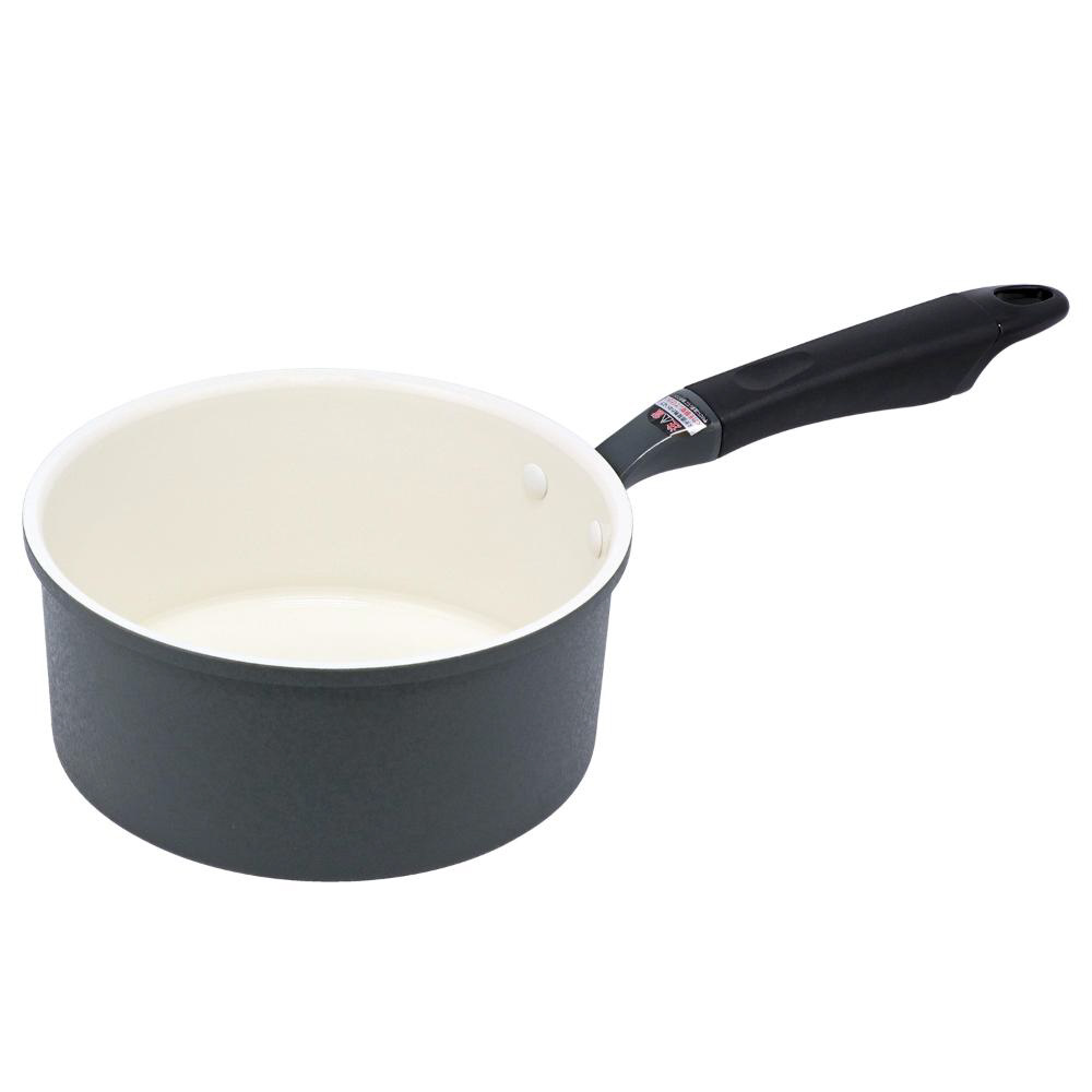 片手鍋 18cm ソースパン セラミック IH ガス火対応 アリエッタセラミック ダークグレー ND-3616